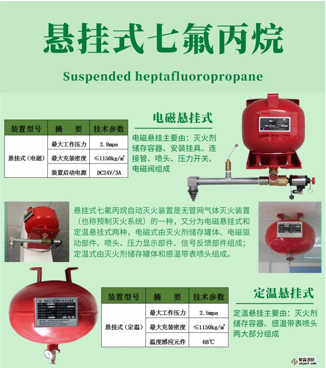 悬挂式七氟丙烷灭火装置具有如下特点:
